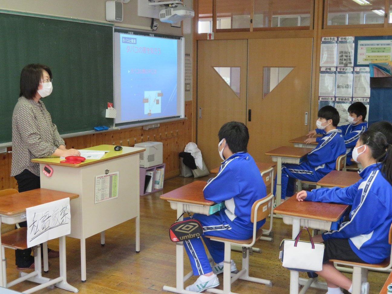 2020年12月9日6時間目(14:30~15:20)に北方町立北方中学校の2年生の1~5組でもとす薬剤師会の学校薬剤師5名が、薬物乱用防止講座を行いました。