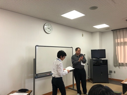 2017/11/21 =コアカリ研究会= 現役薬剤師・実習生に役立つ薬局英会話術を磨こう!Part2 ~正しく伝えよう Don’t worry!~(外用薬編) 日時:平成30年11月21日(水)13:30~15:00 場所:本田コミュニティーセンター 講師:Sunflower English School エリック先生 参加者:薬剤師15名、第Ⅲ期実習生3名 他支部の実習生さんも指導薬剤師の先生と一緒に参加してくれました。